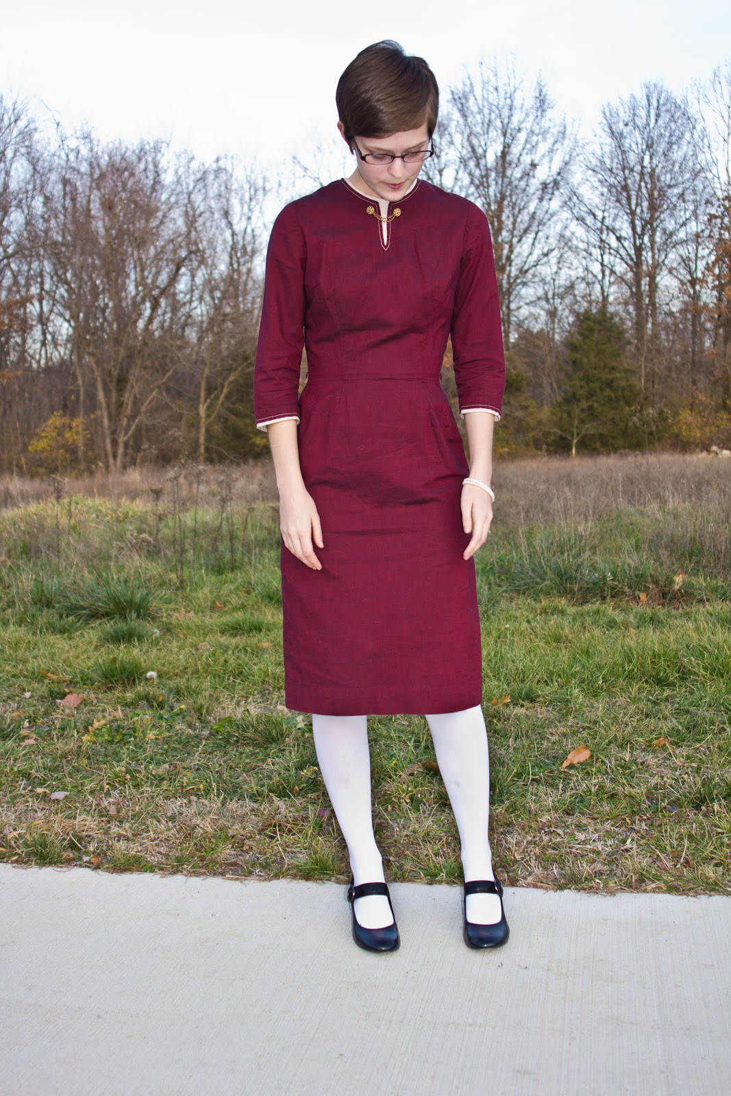 I've had this vintage dress for a while now and although I love the shape and color I don't wear it very often. It seems a little too fancy for daytime wear and I rarely go somewhere that requires dressing up so it just languishes in my closet. But yesterday it had it's day when I wore it to an early Christmas party and I'm still just as in love with it as I was when I bought it!
